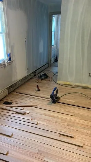 This project involved a full Hardwood Floor in Vernon CT installation, and consequently, several rooms were transformed from exposed subflooring into smooth, professionally finished hardwood surfaces. Throughout the process, the old materials were removed, new boards were precisely installed, and the floors were sanded to ensure an even texture. Finally, a protective finish was applied, improving durability while giving the home a cleaner and more refined appearance.