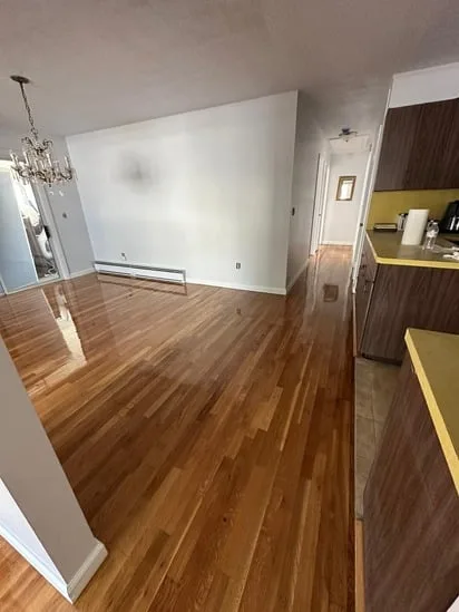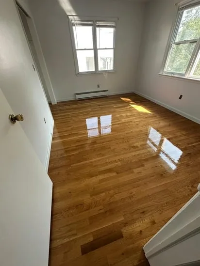 This project involved hardwood floor refinishing across multiple interior rooms, including bedrooms and shared living areas. Initially, the existing wood surfaces showed signs of wear and uneven sheen. Subsequently, the floors were sanded, smoothed, and refinished to restore uniform color and reflectivity. As a result, the natural wood grain became more pronounced, and the spaces gained a clean, consistent appearance with improved durability and visual continuity.
