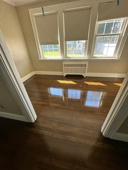 This project involved a comprehensive hardwood floor refinishing Braintree service to restore the original character of the home’s oak surfaces. Initially, the process required a deep sanding to remove years of surface wear and prepare the wood for a new aesthetic. Moreover, once the raw wood was exposed, a dark pigment was applied to achieve a modern, sophisticated look. Ultimately, this hardwood floor refinishing Braintree was completed with multiple layers of a high-durability topcoat, ensuring a consistent and protective gloss across the kitchen and living areas.