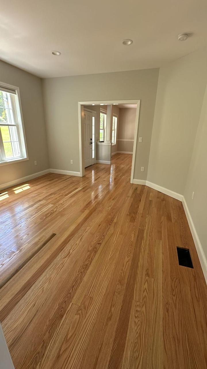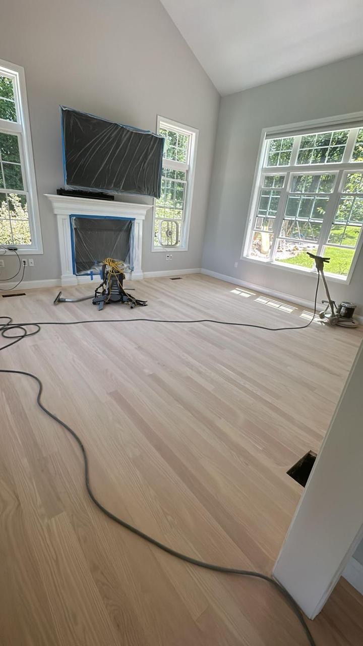 We transformed this space with a brand-new floor, expertly installed, sanded, and finished to perfection. The result is a smooth, elegant, and durable surface that enhances the entire room. Completed in Stamford, CT.