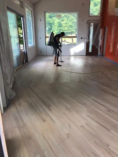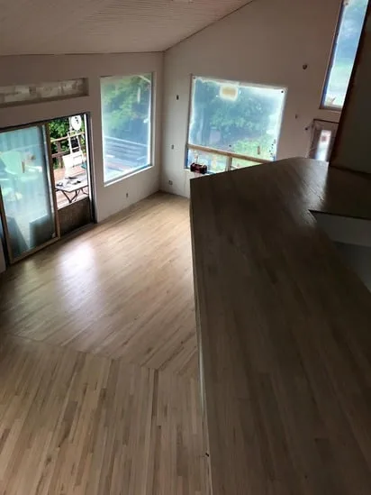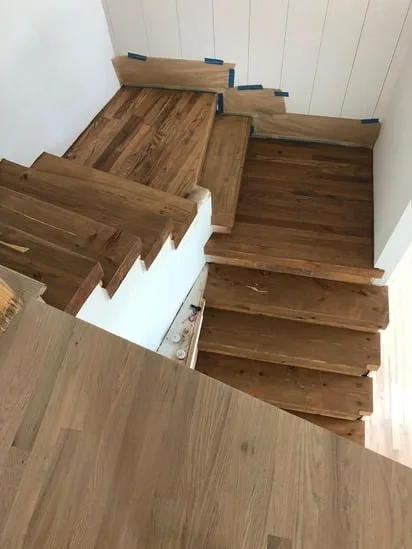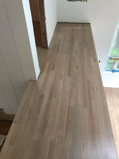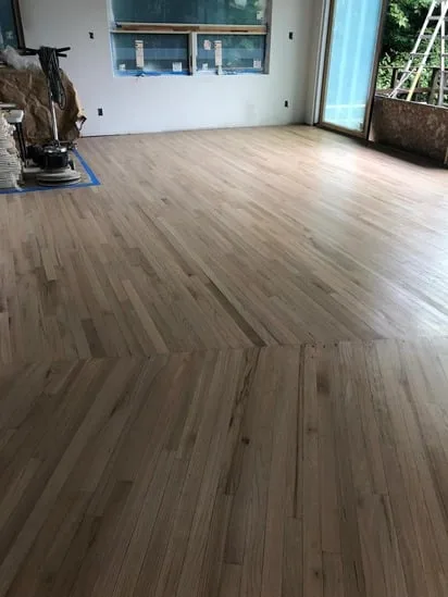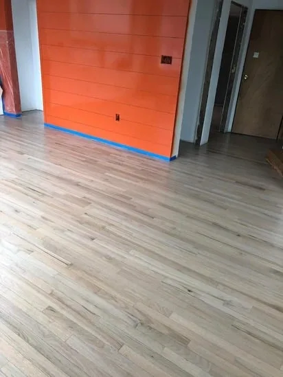 This project involved a complete hardwood floor refinishing process. Throughout the work, the floors were carefully sanded, cleaned, and treated to restore their natural tone. Additionally, the stairs received a darker finish to create visual contrast and depth. As a result, the transition between the floors and steps enhances the overall harmony of the space, while maintaining a consistent, smooth appearance that highlights the natural grain of the wood.